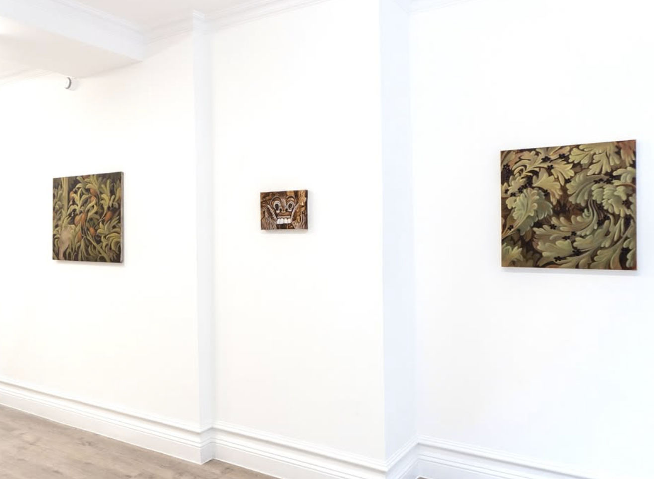 Nanci Byrne is a London born & based painter. Toying with misdirection, movement and ambience, Nanci creates ornate paintings that challenge the boundaries of what is meant by ‘decorative’. Soft shapes conceal disquieting atmospheres, with surrealistic, dreamlike imagery unfurling and revealing itself. When viewing her pieces there is often the uneasy sense that they look back at you. Underpinning the whole of her practise is an exploration into the relentlessness of mother/womanhood, which she approaches with darkly comedic references, animal motifs, and the complex interplay of repetition, pattern and destruction.