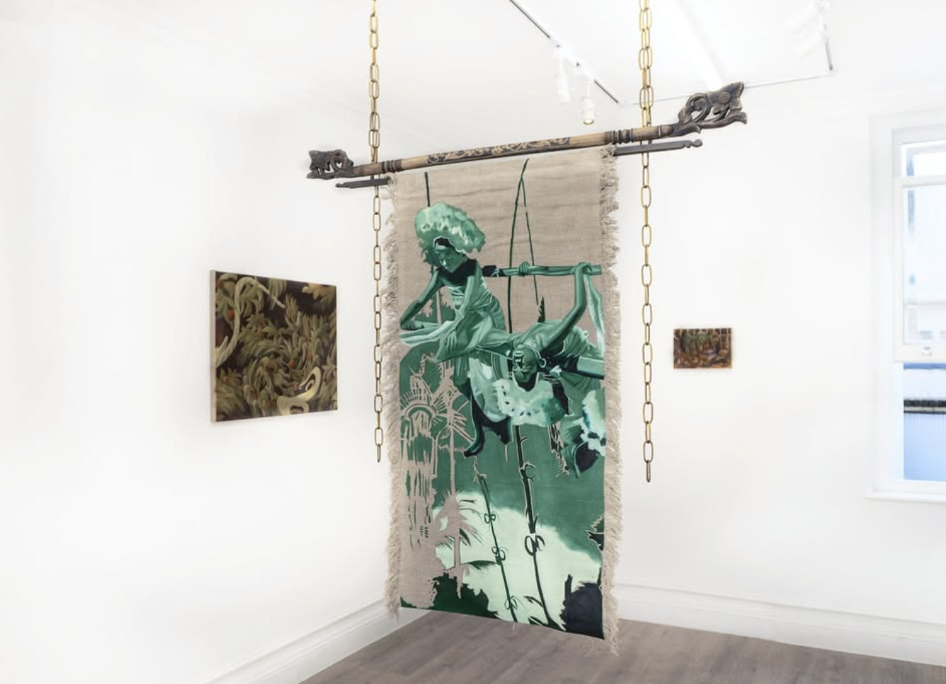 As a trained textiles designer, Nanci is especially driven to explore the (sometimes negative) value placed on decorative art within a contemporary context. Her paintings draw inspiration from 17th cent. tapestries, and the Art & Crafts movement, but also her long-standing love of video games. She recently graduated from the Royal college of Art with an MA in Painting and is a Frank Bowling scholar.